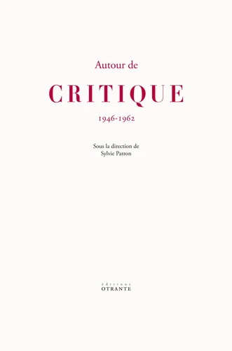 Premier ouvrage collectif consacré à Critique, il complète les publications existantes en apportant des points de vue diversifiés sur la revue et offre un aperçu sur l'histoire intellectuelle des années d'après-guerre à travers l'évocation de certains épisodes et acteurs importants. Contributions de Marina Galletti, Koichiro Hamano, Nicola Apicella, Sylvie Patron, Eric Hoppenot et Thomas Franck. Sylvie Patron est maître de conférences habilitée à diriger des recherches en langue et littérature françaises à l'Université de Paris, membre du Centre d'études et de recherches interdisciplinaires en lettres, arts, cinéma (CERILAC).