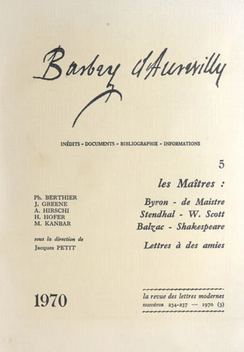 Barbey d'Aurevilly. Tome 3, Les obsessions du romancier : l'amour, la révolte, la mort ; Lettres de Barbey à Hector de Saint-MaurJacques Petit12,68 €