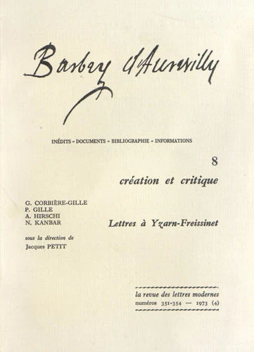 Barbey d'Aurevilly. Tome 8, Création et critique ; Lettres de Barbey à Yzarn-Freissinet