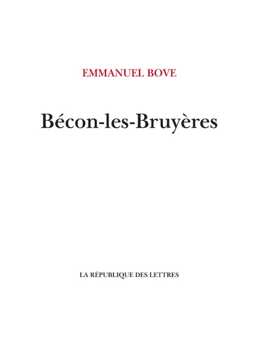Ici une boîte aux lettres abandonnée, là un kiosque à journaux fermé ou une tombe d'un cimetière de chiens. Peter Handke (Prix Nobel de littérature 2019) ne s'y trompera pas, affirmant : "Bécon-les-Bruyères est pour moi le plus grand de tous les textes de Bove. Un texte qu'on doit absolument lire. Il décrit une banlieue mythique et, en même temps, son écriture est absolument modeste. C'est la banlieue absolue".