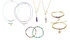 Un beau cadeau, réalisé entièrement par l'enfant et personnalisé. 2 colliers avec une chaîne dorée et un cristal en pendentif ; 2 bracelets en macramé doré avec un cristal en pendentif ; 2 colliers et 2 bracelets en double-rang composés de perles de rocailles et des breloques étoile et lune sur des fils de jade.
