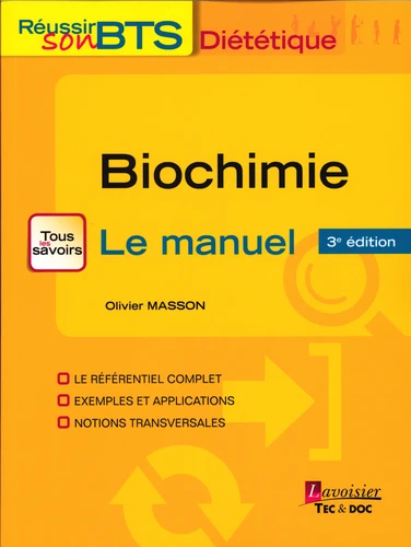 Ce manuel, conforme au référentiel officiel du BTS diététique, permet aux étudiants de comprendre et d'assimiler les notions fondamentales de biochimie. Il constitue ainsi un socle indispensable pour la compréhension des autres matières telles que la physiologie, la connaissance des aliments, la nutrition ou encore la physiopathologie. Cet ouvrage s'articule sur deux grands thèmes : - la biochimie structurale, qui étudie l'organisation moléculaire de la matière vivante avec une présentation approfondie des glucides, lipides, protides et vitamines ; - la biochimie métabolique, qui analyse les devenirs de ces molécules dans l'organisme, leurs inter-relations et leurs régulations.
