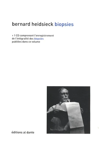 Biopsie : " prélèvement d'un fragment de tissu sur un être vivant pour l'examen histologique " (Petit Larousse illustré). M'appuyant sur cette définition, j'ai, dans la seconde moitié des années soixante, réalisé toute une série de poèmes, souvent courts, en partant d'éléments, non pas prélevés sur le corps humains, mais appartenant au corps social. Ce furent ainsi, pour certains d'entre eux, parfois des sortes de " poèmes trouvés ", autour de moi, dans le domaine économique, administratif, social, citadin. Mon activité professionnelle me fournissait une mine d'informations, banales, cocasses et quotidiennes, parfois fascinantes par leur impact, leur rôle, leur jeu, leur efficacité, leur utilité, leur bêtise. Il m'est arrivé souvent d'écrire que mes poèmes étaient des poèmes serpillières, des poèmes attrape-tout, des poèmes éponges, des poèmes caniveaux, ceci en vue de tenter de sublimer le banal, l'ordinaire, le rien-du-tout, notre ordinaire, notre quotidien. Ne serait-ce que pour le mettre en évidence, le comprendre, le vivre et l'exorciser. Et se familiariser ou rire de ses riens. Dès 1955, Bernard Heidsieck participe à l'émergence de la poésie sonore. En 1962, il crée la notion de poésie-action, dont il se revendique toujours. Ce livre regroupe la totalité des Biopsies, qui sont, aujourd'hui encore, inédites ou épuisées.