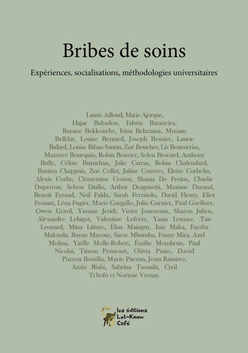 Puis rapportées pour être discutées collectivement, sur le fond et sur la forme. Il y a dans ce livre des choses très brutes, terre-à-terre, simples à comprendre. Il y a dans ce livre de la méthodologie qui s'est élaborée en dehors des manuels de méthodologie ; dans l'épaisseur sensible de l'expérience qui se joue parfois dans l'espace public et universitaire. Il y a dans ce livre un questionnement progressif sur le soin.