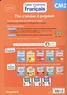Tout le programme de l'année : grammaire, orthographe, conjugaison, lexique Une structure simple qui favorise les apprentissages : une notion par page ou par double page La rubrique " rappelle-toi " propose à l'enfant de reconstruire lui-même sa leçon sous forme visuelle pour bien retenir l'essentiel : carte mentale ou schéma avec des éléments à compléter ou à colorier. La rubrique " entraîne-toi " comporte des exercices ciblés pour s'entraîner efficacement sur chaque notion + Des petits personnages pour identifier toutes les natures grammaticales et les mémoriser + Tous les corrigés détachables au centre du cahier