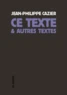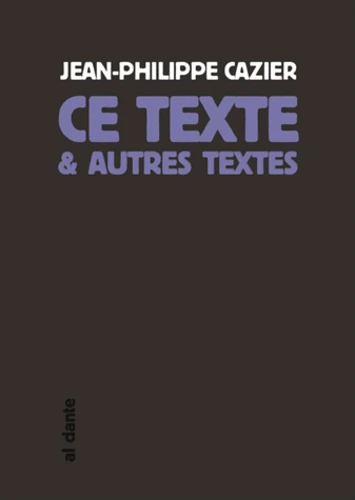 Ce livre est fait de textes à propos d'autres textes. Ou d'un seul autre texte,multiple, à chaque fois différent. Et ces autres textes - ou ce texte - sont/est peut-être, aussi, autre chose : des peintures, des mouvements, des processus, de la vie. Ce livre est fait de textes qui existent entre ce qu'ils sont et ce qu'ils peuvent être. D'autre. Ce livre est donc aussi autre chose qu'un livre". [J.-P.