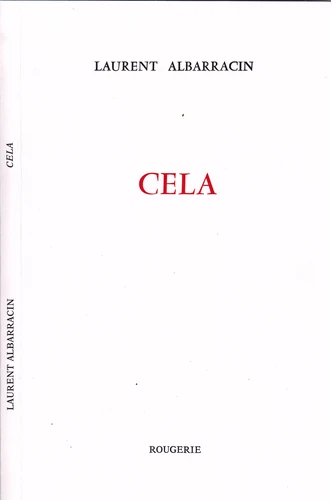 Animateur des éditions du Cadran Ligné, Laurent Albarracin livre dans ce nouveau recueil une litanie de "cela" ou une façon d'explorer les vertiges de la tautologie et de l'évidence. Petit traité qui met en valeur les connivences de la poésie (jeu sur les sonorités...)et de la philosophie. Pour une démarche du fragile de l'émiettement de l'impondérable de la délicatesse, non dénuée d'humour : "C'est juste ça et c'est tout ça.