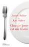Chaque jour est un festin est un almanach sur le goût, l'histoire, les gens, le sexe, la nourriture, le vin, l'art. Sophistiqué, pratique, péremptoire et indispensable, ce recueil est un hommage à la gloire de la nourriture et du vin, et au plaisir de les partager. A tout ce qui fait la vie, pour James Salter qui écrivait déjà dans Un Bonheur parfait : "La vie, c'est le temps qu'il fait, les repas.