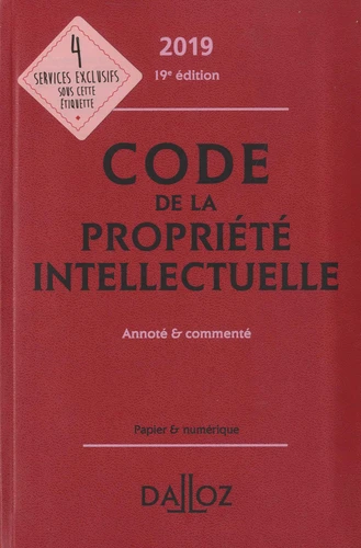 Les + de l'édition 2018 : Commentaires explicatifs et richesse des annotations de la jurisprudence nationale et européenne Appendice thématique organisé autours des deux composantes de la matière : la propriété littéraire et artistique et la propriété industrielle (brevets, marques ...) Code enrichi, annoté et mis à jour en continu sur smartphone, tablette et Internet Nouveau : avec Dalloz Connect, accédez à votre Code depuis Word© A jour des dernières évolutions législatives, réglementaires et jurisprudentielles, cette 19e édition du Code de la propriété intellectuelle Dalloz est à jour notamment : - des règlements délégué et d'exécution du 5 mars 2018 complétant et précisant les modalités d'application du règlement du 14 juin 2017 sur la marque de l'Union européenne, - de l'ordonnance du 9 mai 2018 et du décret du 31 mai 2018 relatifs au européen à effet unitaire et à la juridiction unifiée du brevet, - de l'arrêté du 3 août 2018 relatif au remboursement de la rémunération pour copie privée.