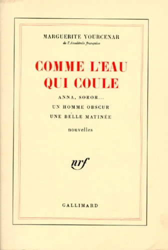 Comme l'eau qui coule est un recueil de trois nouvelles, dont la première, Anna, soror... , se trouve republiée sans changement important et dont les deux autres ont été entièrement composées entre 1979 et 1981. En fait, ces trois oeuvres ont occupé Marguerite Yourcenar pendant une grande partie de sa vie. Ecrit en 1925, inclus en 1935 dans le recueil La mort conduit l'attelage, publié isolément en 1981, Anna, soror...