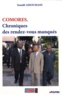 COMORES. Chroniques des rendez-vous manqués "Puis vint le 29 avril 1999. Le colonel Azali Assoumani, chef d'Etat-major de l'ar- mée comorienne prit le pouvoir par un coup d'Etat. L'Etat comorien était alors depuis près de deux ans dans une déliquescence jamais at- teinte (...) Les militaires en profitèrent pour prendre le pouvoir, avec la bienveillance de certains par- tis politiques. Le Front Démocratique est un des partis qui croyaient que le colonel Azali pouvait donner une nouvelle orientation au pays.