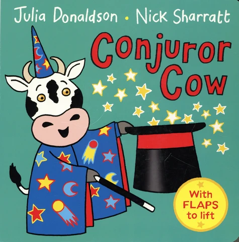 Conjuror Cow's magic tricks keep going wrong. Will she ever make a white rabbit appear ? Lift the flaps to find out.