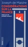 - Un grand classique de la philosophie politique de nouveau disponible dans une édition accessible. - Le livre le plus connu de Joseph de Maistre continue à faire débat parmi les différentes interprétations de la Révolution française. - Avec une préface de Pierre Manent. D'origine savoyarde, Joseph de Maistre n'en a pas moins suivi avec une grande attention les événements politiques qui ont touché la France durant le cycle de la Révolution et de l'Empire.