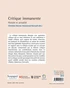 La critique immanente désigne une opération critique qui se veut intérieure et non extérieure à l'objet critiqué, qu'il s'agisse de textes, d'oeuvres, de pratiques et d'institutions et même de sociétés dans leur globalité. Aujourd'hui, c'est le plus souvent en rapport avec la critique sociale que ce concept est discuté, notamment par la théorie critique francfortoise. Les contributions réunies dans ce volume s'attachent d'une part à l'histoire du concept (Hegel, Marx, Benjamin, Adorno), d'autre part aux discussions les plus contemporaines sur les modèles de la critique sociale qui exigent de partir de normes ayant validité sociale dans les sociétés critiquées (Walzer, Habermas, Honneth).