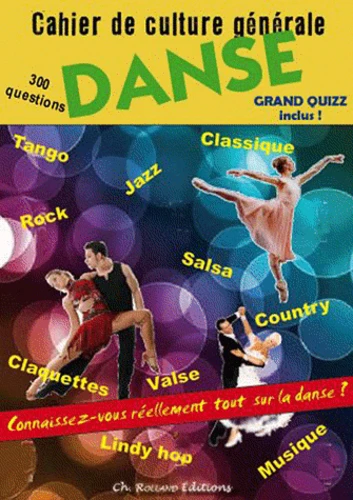 Connaissez-vous réellement tout sur la danse ? Pas si sûr ! Ce « cahier de culture générale » a été réalisé en partenariat avec le site Internet Ultra-Danse.com, l’une des références sur les différentes formes de danse pratiquées en tant que loisir. Cet ouvrage présente de petits articles informatifs sur un domaine précis (le cinéma et la danse, la musique swing, la danse à l’étranger, techniques de danse, etc.) ou un style de danse particulier (le ballet de danse classique, la salsa, le hip-hop, les danses en ligne country western, etc.). À ces articles sont associées des question de quiz pour amener le lecteur à approfondir le domaine en question ou tester sa culture. Les questions de cet ouvrage (environ 300) sont présentées avec des réponses proposées (choix multiples) soigneusement écrites avec une pointe d’humour. Les réponses sont proposées en fin d’ouvrage avec une explication. Exemple de question : Q : En danse classique, comment appelle-t-on une danseuse confirmée ? a. Une pro b. Un rat c. Une souris d. Une étoile Solution : d. On parle d’une danseuse étoile.