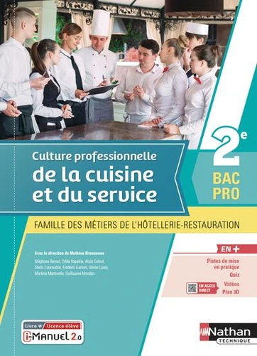 Cet ouvrage de Culture professionnelle de la cuisine et du service de 2de Bac Pro répond aux enjeux de la nouvelle Famille des Métiers de l'Hôtellerie-Restauration (FMHR) qui regroupe le Bac Pro Cuisine et le Bac Pro Commercialisation et Services en Restauration. Il est proposé au choix en livre papier + licence numérique i-Manuel ou en 100% numérique i-Manuel. En version imprimée, cet ouvrage propose en complément une licence numérique i-Manuel 2.