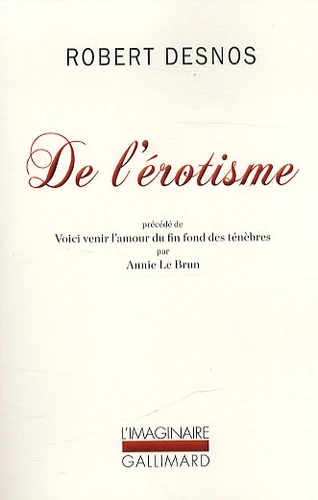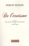 Dans ce court texte écrit en 1923 pour le collectionneur Jacques Doucet, Robert Desnos fait un état des lieux de la littérature érotique, ou plus particulièrement de la place de l'érotisme et de sa perception dans les écrits depuis l'Antiquité. Il va à l'encontre des conventions et propose une interprétation qui revient sur les légendes et autres préconçus, une interprétation " moderne " qui bouscule les conventions, comme le souligne le titre complet De l'érotisme, considéré dans ses manifestations écrites, et du point de vue de l'esprit moderne.