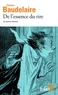 Dans ces trois textes contemporains des Fleurs du Mal - De l'essence du rire, Quelques caricaturistes français et Quelques caricaturistes étrangers -, Charles Baudelaire évoque, questionnant le rire et son innocence présumée, de nombreux noms de caricaturistes : Daumier, Gavarni, Hogarth... Alors critique d'art, il y excède cependant la forme de l'article, transformant ces réflexions sur le rire et la caricature en un petit triptyque secret pour sa poétique de la modernité.