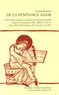 A la fin du XVe siècle, Colard Mansion traduit en français ce récit riche en motifs légendaires, qu'il complète dans un second temps par la Création d'Adam et la Légende du bois de la sainte Croix. Rédigé au commandement de Louis de Bruges, le plus important bibliophile des anciens Pays-Bas méridionaux après Philippe le Bon, De la Penitance Adam est contenu dans trois manuscrits luxueux, dont un enluminé par le Maître brugeois de 1482.