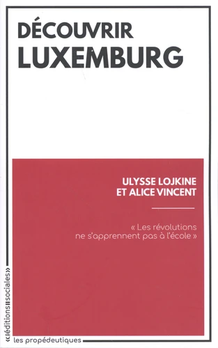 Découvrir c'est laisser de côté les for- mules et les simplifications pour se confronter directement aux textes. Sur une auteure, sur une question, la collection Découvrir présente douze textes, commentés et mis dons leur contexte, proposant au lecteur des pistes pour aller plus loin. Les textes de Rosa Luxemburg (1871- 1919) rassemblés ici explorent ses principaux concepts : la grève et la révolution, les masses et le parti, le nationalisme et la guerre, l'impérialisme et ses causes...