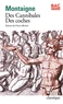 Ces deux chapitres, parmi les plus célèbres des Essais, sont une véritable leçon de tolérance. Montaigne nous apprend que les sauvages ne sont pas forcément ceux que l'on croit. Les chrétiens s'entretuant durant les guerres de Religion sont tout aussi sauvages que les Sauvages. "Chacun appelle barbarie ce qui n'est pas de son usage" : nous sommes tous le Cannibale de quelqu'un. C'est aussi le récit d'une curiosité et d'une fascination : Montaigne nous parle de la découverte du Nouveau Monde, des récits des voyageurs qu'il a lus, et de sa propre expérience de l'altérité.