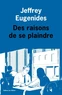 "Tomasina pouvait juger de la fécondité d'un homme à son odeur et à son teint. Une fois, pour amuser Diane, elle avait ordonné à tous les individus de sexe masculin de tirer la langue. Ceux-ci s'étaient exécutés sans poser de question. Comme toujours. Les hommes aiment être objectifiés". La gent masculine, voilà le sujet des nouvelles qui composent Des raisons de se plaindre . Leurs petites lâchetés, leur mauvaise foi, leurs erreurs et leurs errances.