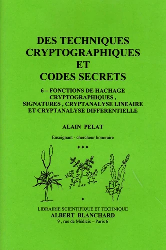 Des techniques cryptographiques et codes secrets. Tome 6, Fonctions de hachage cryptographiques, signatures, cryptanalyse linéaire et cryptanalyse différentielle