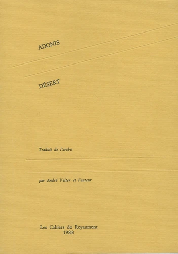 Ali Ahmad Saïd Esber, d'origine rurale, est né le 1er janvier 1930 dans le village de Kassabine, en Syrie. Il prend à vingt ans le pseudonyme d'Adonis, lit Baudelaire, Rilke et, plus tard, Michaux, Char. Il choisit la nationalité libanaise en 1962. Sa poésie exprime les déchirements et les espoirs de la culture arabe contemporaine. Adonis vit à Paris depuis 1986.