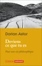 D.Astor est un spécialiste de mon chouchou (oui, Nietzsche avec sa moustache..),et offre là,dans cette toujours aussi délicieuse collection"Autrement",une oeuvre d'introduction à sa propre pensée sur un thème cardiaquement, viscéralement nietzschéen : le "devenir de ce que l'on est".Oui,de soi-meme il est question, et en tant qu'autre. C'est là que ça devient palpitant, pour le coeur comme pour les tripes : qu'as tu dans le ventre et pour quoi ton coeur bat-il, dans ce temps qui passe? Pour mon etre et mon devenir.. Comment l'envisager? D.Astor propose des pistes, ouvre des voies : à nous de marcher. Bonne randonnée jusqu'à ce réel petit sommet de la pensée(de Nietzsche ou d'Astor, ou de vous-meme, l'important c'est de marcher..euh pardon, de lire ce livre, excellent guide en la matière,pour commencer..) pendant laquelle votre "individu-à-développer" vous fichera enfin la paix. Par contre vous risquez de croiser Adorno, qui n'est pas commode.