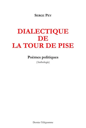 Dialectique de la tour de Pise rassemble les poèmes politiques et théoriques qui parsèment la poésie d'action de Serge Pey. Le poète de la parole des bâtons, nous montre dans cet ensemble, les dialogues et les tensions que la poésie entretient avec la pensée et l'utopie. Conçus comme des réflexions libres à mi-chemin entre physique, science, poésie et philosophie, ces textes sont des armes critiques dans le combat contre la société d'oppression de la marchandise totalitaire.