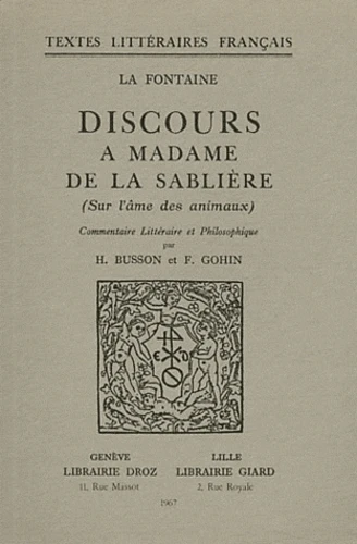 Discours à Madame de la Sablière (sur l'âme des animaux)