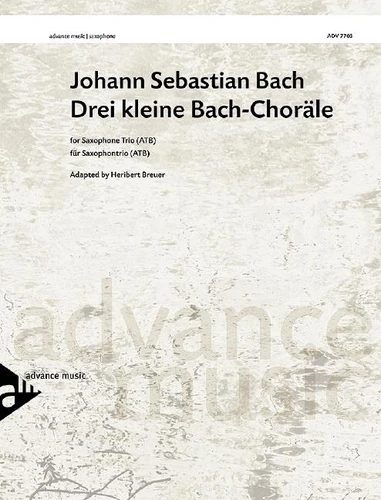 These three choral preludes have been taken from Bach's Organ Booklet. In the first chorale, the principal voice is assigned to the alto saxophone. In the third chorale, it is the tenor saxophone performing the expressive sixteenth-note lines that plays the more prominent part. Besetzung : 3 saxophones (ATBar)