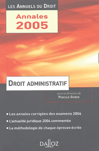 L'Annuel Droit administratif 2005 regroupe une synthèse de l'actualité de droit administratif de l'année 2004, des annales corrigées (sujets donnés au cours de l'année universitaire 2003-2004), et des conseils méthodologiques pour réussir les épreuves écrites.