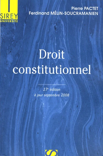Le manuel classique de Pierre Pactet et de Ferdinand Mélin-Soucramanien s'adresse aux étudiants des facultés de droit, des instituts d'études politiques, aux candidats aux concours administratifs, ainsi qu'à tous ceux que la vie politique et institutionnelle ne laisse pas indifférents. Couvrant l'ensemble de la matière, il étudie successivement les données fondamentales des régimes politiques, les grands régimes étrangers (notamment, Allemagne, Chine, Etats-Unis, Grande-Bretagne, Italie, Japon et Russie), l'histoire constitutionnelle française, et consacre plus de la moitié de ses développements à la V République, qui fait l'objet d'une analyse détaillée et complète.