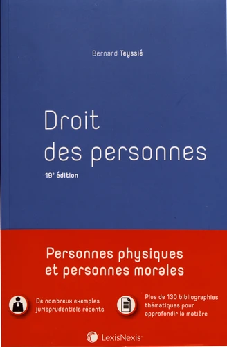 Quant aux personnes morales, leur diversité est extrême. Leur poids dans la vie économique et sociale justifie un examen attentif des règles qui gouvernent leur constitution, leur fonctionnement, leur dissolution... Le tout est constamment éclairé par la présentation de documents : extraits de textes législatifs ou réglementaires, circulaires, décisions de justice, données statistiques, etc. Vous trouverez dans cet ouvrage toutes les réponses à vos questions sur : les personnes physiques ( l'attribution de la personnalité - l'identification des personnes - la protection des mineurs et des majeurs) ; les personnes morales (leur nature juridique - leur constitution et leur fonctionnement - leur dissolution)