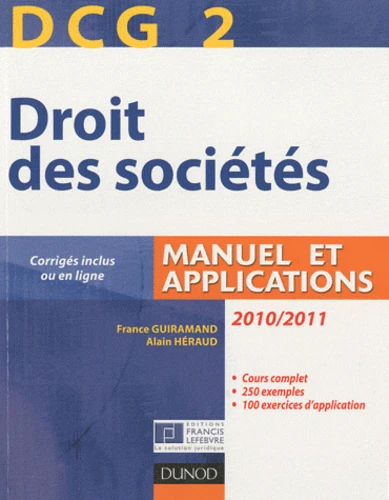 Alliant efficacement les notions fondamentales et la pratique du droit des sociétés, ce manuel couvre l'intégralité du programme du Diplôme de Comptabilité et de Gestion, épreuve n° 2. II est ainsi un outil efficace de préparation et de réussite à l'examen : L'entreprise en société : contrat de société, personne morale, droit comparé... La constitution, le fonctionnement, le contrôle et la dissolution d'une société Les principaux types de sociétés : SARL, société anonyme, société en nom collectif, SAS, société civile... Les autres types de groupement : société en commandite, société d'exercice libéral, société coopérative, GIE, association... Le droit pénal des groupements d'affaires : infractions générales et spécifiques, action publique...
