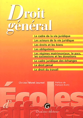 Cet ouvrage de droit n'est un ensemble de recettes simplificatrices ni une réflexion abstraite et purement intellectuelle mais un manuel qui permet la compréhension des mécanismes juridiques fondamentaux dans un nombre important de domaines du droit : le droit civil, le droit commercial, le droit pénal, le droit du travail. Destiné en priorité aux étudiants des BTS à forte dominante juridique tels que les BTS " Banque ", " Assurance ", " Professions immobilières ", pour la partie " Droit général " de leur programme, ce livre s'adresse également à tous les étudiants dont le cursus intègre la matière juridique. Le sens pédagogique de son auteur et son goût assez prononcé à démêler le complexe pour aller à l'essentiel dans un langage simple et clair, le rend accessible tant aux étudiants qu'aux professionnels et non-initiés, sous le double prisme de l'actualité et des exigences des référentiels des examens officiels.