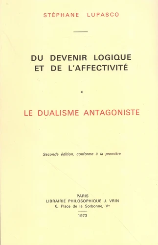 Du devenir logique et de l'affectivité. 2 volumes : Tome 1, Le Dualisme antagoniste ; Tome 2, Essai d'une nouvelle théorie de la connaissance