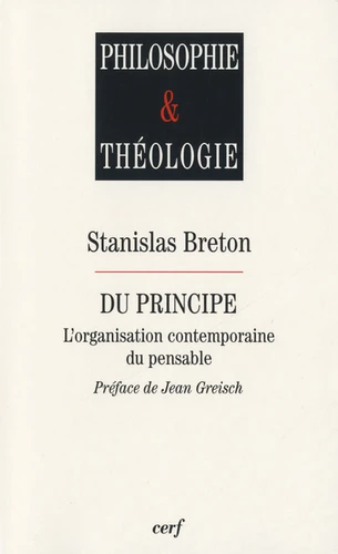 "La méditation du Principe est le principe même de la philosophie." Cette sentence par laquelle débute le présent ouvrage ne décline pas seulement le projet d'un livre, elle traduit l'ambition d'une oeuvre. Son auteur, Stanislas Breton, disparu le 2 avril 2005, métaphysicien original et génial, parvenu alors au faîte d'une recherche initiée dans les universités romaines, poursuivie dans les Instituts catholiques de Lyon de Paris et relancée à l'Ecole normale supérieure d'Ulm, en déroulait alors la thèse dans une étonnante fulgurance.