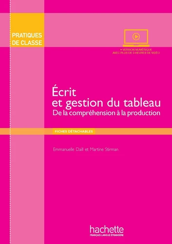 Un outil de formation "prêt à l'emploi" à destination des enseignants de FLE, des formateurs de formateurs et des responsables pédagogiques 3 ateliers basés sur des séquences de classe filmées pour se former au parcours d'apprentissage - Démarches méthodologiques pour développer des compétences - en compréhension et en production écrites - Outils pour une gestion efficace du tableau - Activités de mise en pratique - Des séquences de classe filmées, supports concrets de formation Contenu de l'ouvrage : - Les fiches de formation détachables - Un DVD-ROM (ou sa version téléchargeable) avec : - toutes les séquences filmées : 3 heures - et demie de vidéo - toutes les fiches Tableau - les fiches Faire cours, S'exercer et Théorisation pour projection - Le guide de l'animateur, téléchargeable depuis Internet avec un deuxième code indiqué à l'intérieur de l'ouvrage Ce contenu est à activer avec les codes indiqués à l'intérieur de l'ouvrage. Accéder au téléchargement ici : http : //mini-sites. hachette-education. com/pratiquesdeclasse/ecritetgestiondutableau. html (Lien -> http : //mini-sites. hachette-education. com/pratiquesdeclasse/ecritetgestiondutableau. html)