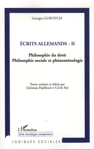 Le second volume des écrits allemands de Georges Gurvitch (1894-1965) comporte les travaux que l'auteur a dédiés à la philosophie du droit, la philosophie sociale ainsi qu'à la phénoménologie qu'il fut l'un des premiers à introduire en France. Il contient une contribution sur le philosophe du droit Otto von Gierke, sur Proudhon, sur le philosophe autrichien du droit Anton Menger et enfin sur Gustav Radbruch.