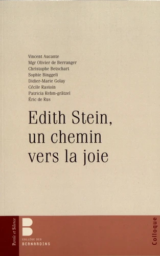 "Ce livre peut être lu comme un essai à plusieurs voix pour rassembler quelques sons épars de la symphonie d'une oeuvre et d'une vie, celle d'Edith Stein, à partir d'un même motif musical repris chaque fois de manière très personnelle par chacun des exécutants de la partition. Ce motif, inattendu peut-être pour ceux qui n'ont de cette grande figure qu'une image austère, comme la plupart des photos qui nous sont restées d'elle le laisseraient croire, est celui de la joie.
