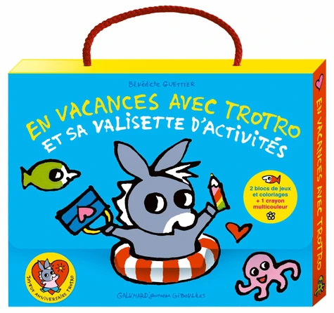 Avec ton crayon multicouleur, c'est parti pour s'amuserr avec Trotro ! La valisette indispensable à emporter partout si vous partez en vacances comme Trotro. Elle contient deux super blocs d'activités avec 30 coloriages et 30 jeux trop rigolos : Cherche et trouve, points à relier, 5 différences, labyrinthe, puzzles... Des jeux tout simples pour les petits !