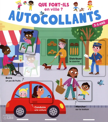 Traverser, conduire, payer, servir, promener... Quelles sont les petites actions qui animent cette ville ? L'enfant va le découvrir à travers une trentaine de verbes et tout autant d'autocollants venant compléter des scènes pleines de vie. Ainsi, de manière ludique, l'enfant développe son vocabulaire et sa motricité par l'activité de collage. Un livre d'autocollants éducatif et amusant !