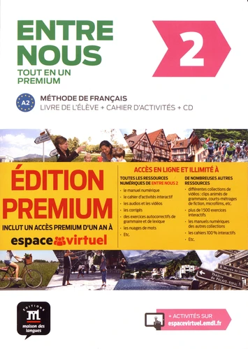 Entre nous 2 A2 tout en un premium. Livre de l'élève + cahier d'activités