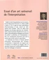 Etablir l'art de l'interprétation comme science, tel est l'objectif de l'Essai de G. Fr. Meier, publié à Halle en 1757. Il s'agit du traité systématique d'herméneutique le plus abouti du rationalisme des Lumières dans son effort pour dégager des principes généraux de l'interprétation, dont le principe d'équité est le coeur. Les règles méthodologiques dégagées permettent de justifier la prétention de l'interprétation à être une connaissance, favorisant ainsi tant la culture que la lutte contre la superstition.