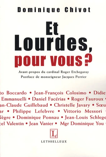 Cent cinquante ans après les apparitions de la Vierge à Bernadette Soubirous, Lourdes rayonne toujours d'une façon extraordinaire. Pour tenter de comprendre cet étonnant succès, Dominique Chivot a demandé à trente personnalités quel regard elles portaient sur Lourdes. Il a interrogé des religieux et des laïcs, chrétiens ou non, des théologiens et des philosophes, des historiens et des sociologues, des hommes politiques et des artistes, des écrivains et des entrepreneurs, des militaires et des infirmiers... Leurs réponses forment un étonnant kaléidoscope, à l'image du sanctuaire cosmopolite et universel. Un certain esprit de Lourdes s'en dégage toutefois, fait de simplicité, de prière, de douceur, d'espérance, de courage, qui dessine un autre visage de l'humanité.