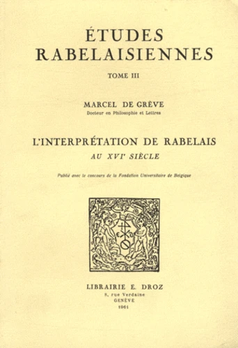 Etudes rabelaisiennes. Tome 1Marcel De Grève, Antoinette Huon, Robert Marichal, Charles PerratGrand Format40,04 €
