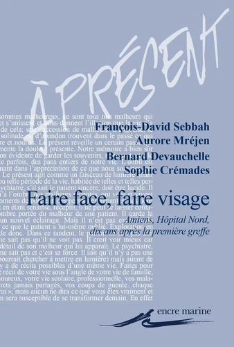 A ces voix se mêlent celles de chercheurs en philosophie. Les quatre textes composant ce livre racontent la greffe de visage et tentent, chacun à leur manière, autant qu'ils le peuvent, de porter cette expérience à l'expression de son sens. Ils s'entrelacent et se font écho. Dans la décantation, toujours inachevée, de ce que signifie l'expérience de la greffe de visage - entre "face" et "visage" - les questions usuellement formulées (du don, de l'identité personnelle, de la singularité du visage eu égard au reste du corps humain, de son importance pour le lien social, de la légitimité du geste nouveau dans la pratique médicale, etc.) se trouvent parfois déplacées, parfois annulées au profit d'autres jusqu'ici insoupçonnées, et ainsi éclairées d'une lumière nouvelle.