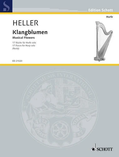 Barbara Hellers "Klangblumen" gibt es neben der Ausgabe für Klavier (Schott ED 20374) und Violine und Harfe (Schott VLB 136) nun auch für Harfe solo. Jedes der 17 Stücke weist einen besonderen Schwerpunkt auf, wie z. B. ein bestimmtes Intervall, eine eigene Spieltechnik, einen charakteristischen Rhythmus oder eine durchgängige Klangfarbe. Die Stücke sind musikalisch anspruchsvoll, aber technisch relativ leicht zu bewältigen.